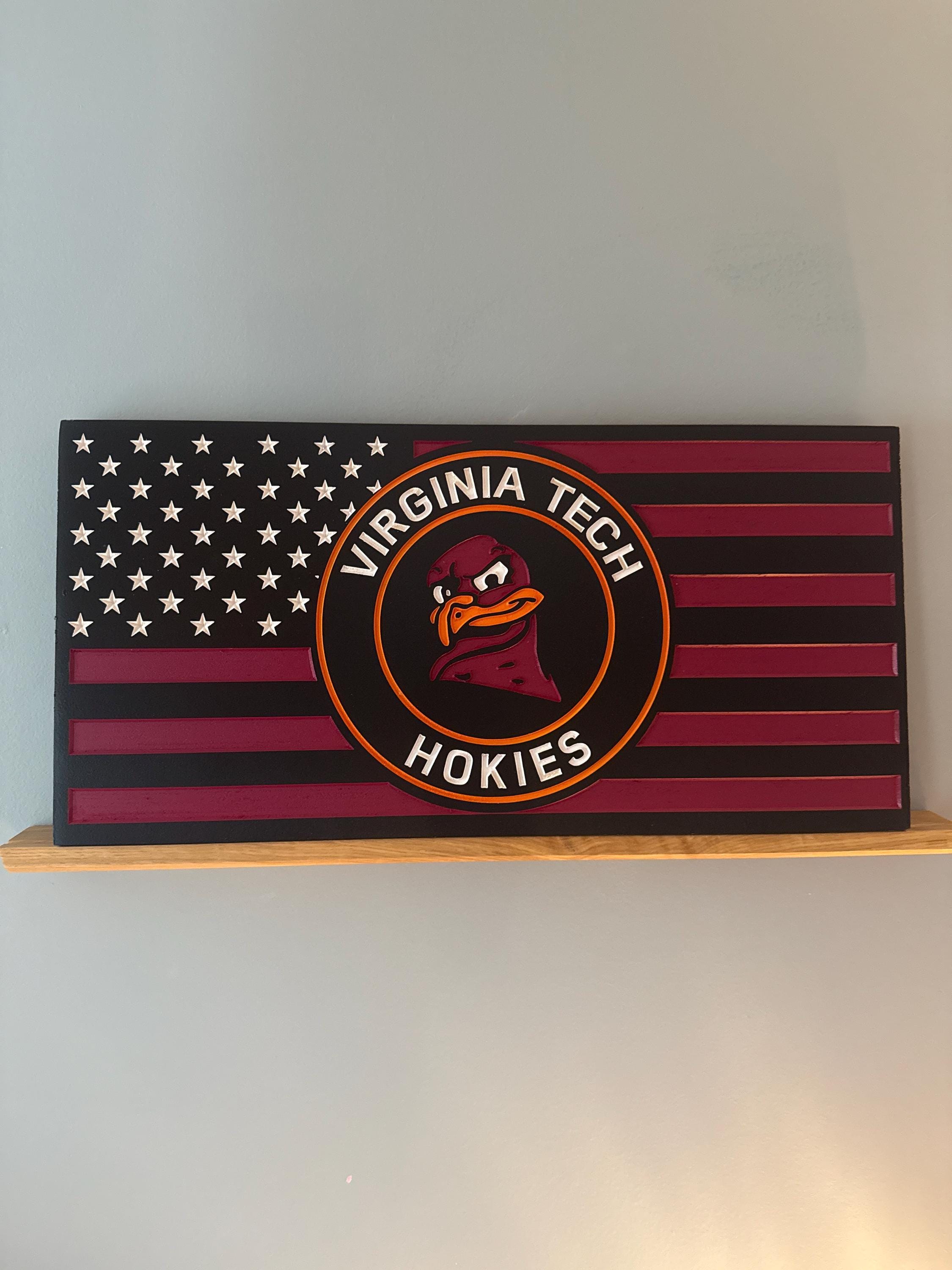 Veteran made College Teams Flag. These are CNC Carved and measure 11.5" x 23.5" x 1” and are coated with clear coat so they will last. These will be made as ordered. I can do any team you choose. These are just some examples of Flags I have done. I am adding a signature board option so you can have classmates at graduation or coworkers at a retirement party sign their names and leave comments. The back and sides will match the original flag. They will be connected by a small chain(included). See pictures please. We also can add text to the flag.